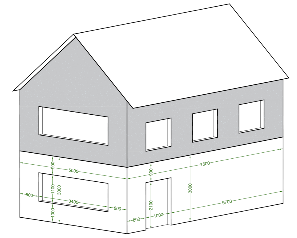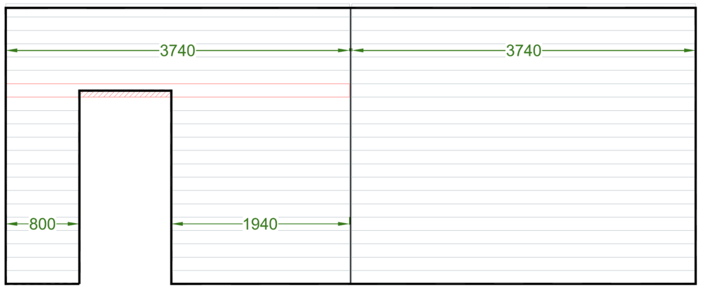 Openings, such as for doors and windows, that partially intrude into a profile should be ignored during material take-off and adapted on-site (areas marked in red).