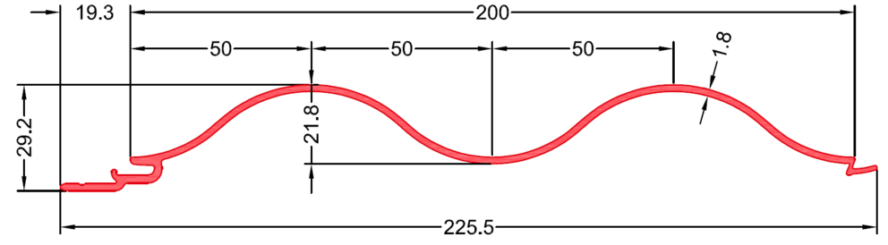 • Total profile width: 225.5 mm