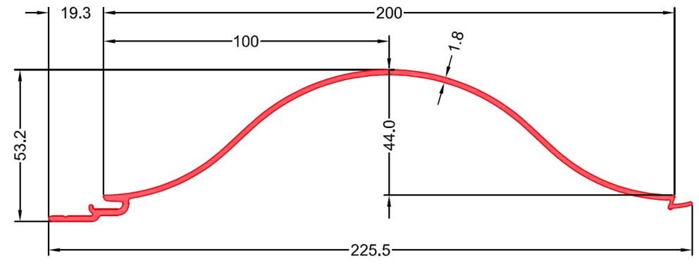 • Total profile width: 225.5 mm