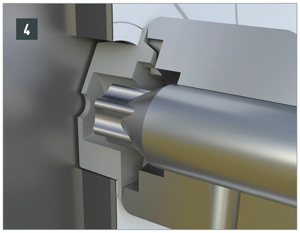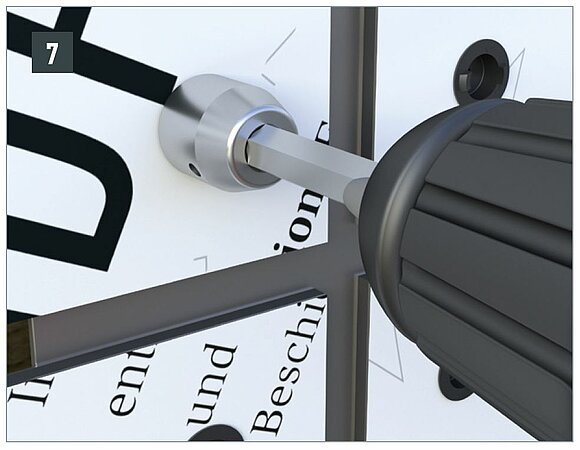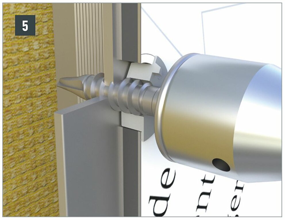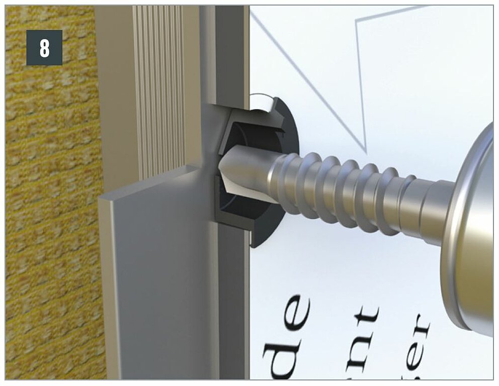 Tighten the screw with a moderate torque so that the screw holds the panel sufficiently in its position, but without pushing out the façade-centring joint from under the screw head.