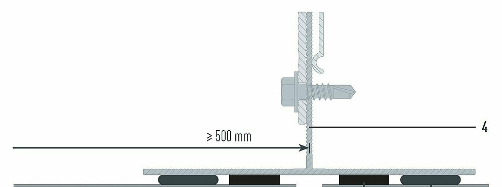 In order to take the expansion of the material into account, supporting rails must not be longer than 3,000 mm. Ensure that the substructure profiles are not joined in one panel, since a fixed connection is created here.