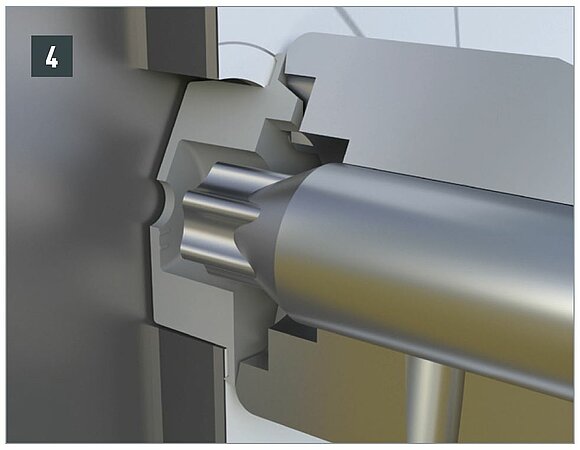 For mechanical fastening to a wooden substructure, the sliding point is designed in the same way as the fixed point. The only difference is that no bushing is inserted into the façade-centring joint.