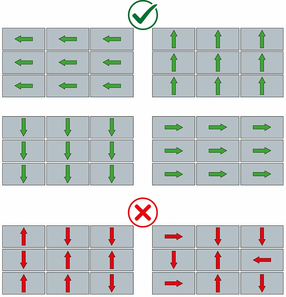 Arrows are printed on the protective film on the back of the panels, indicating the coating direction.