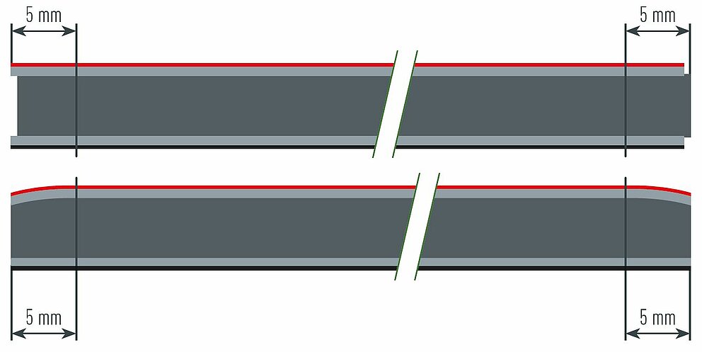 For this reason, when ordering unprocessed panels, make sure that the untrimmed dimensions are trimmed on all sides by at least 5 mm. This way you get attractive, cut edges all round, and you can be sure that the panels are perpendicular in compliance with the manufacturer’s guidelines. If necessary, deburr the panels after trimming.