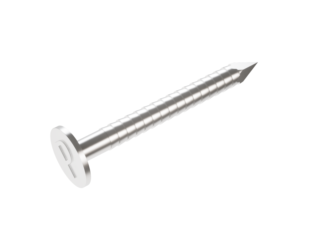 For fastenings of standing seam coverings, clips with nails, screws or rivets made of stainless steel are to be used. For this reason, PREFA offers stainless steel grooved nails in different lengths for fastening PREFALZ coverings.