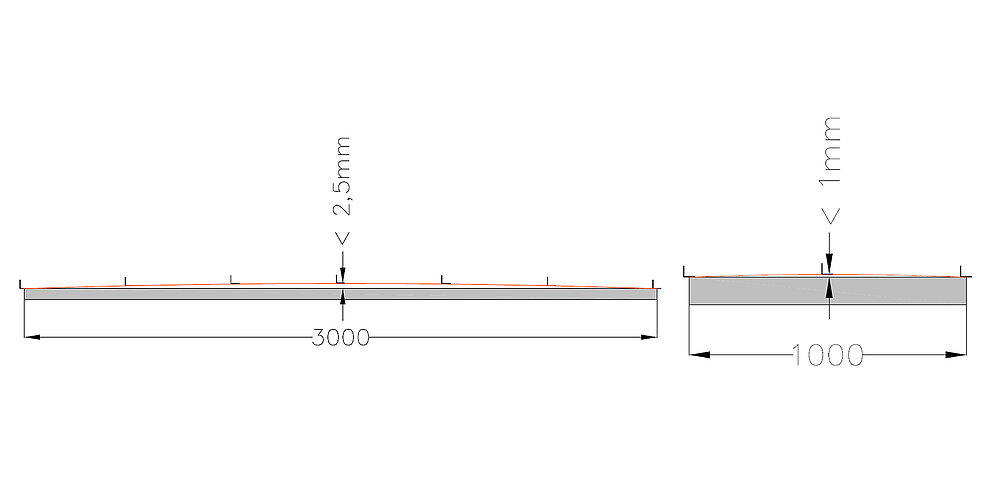 Tolerance for the sub-structure framework is limited to an inside micrometer of 2.5 mm for 3000 mm measuring distance or 1 mm for 1000 mm.