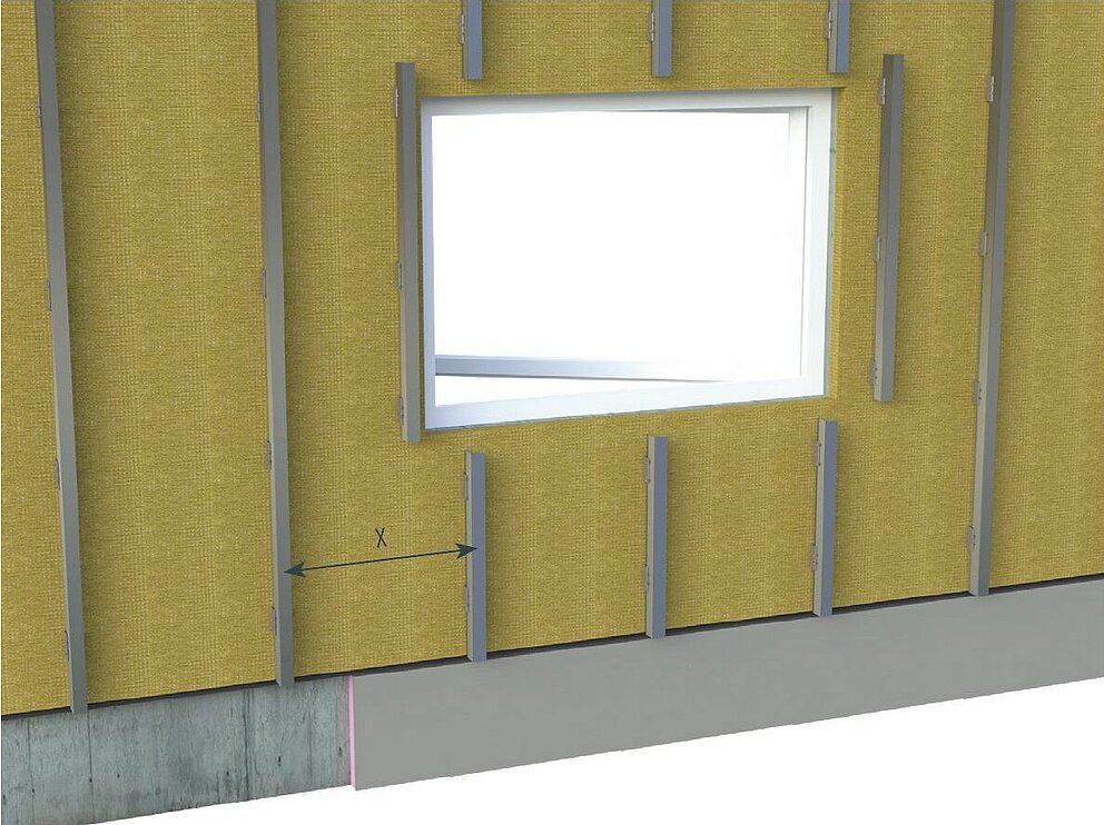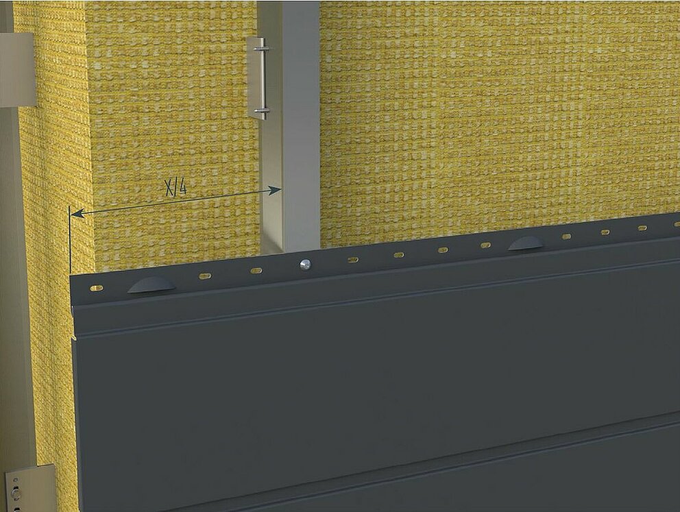 Observe the recommended max. overhang for siding, siding.X and perforated siding as specified in the static requirements for unsupported corners/edges of max. one quarter of the substructure spacing.