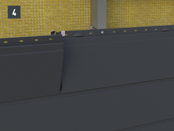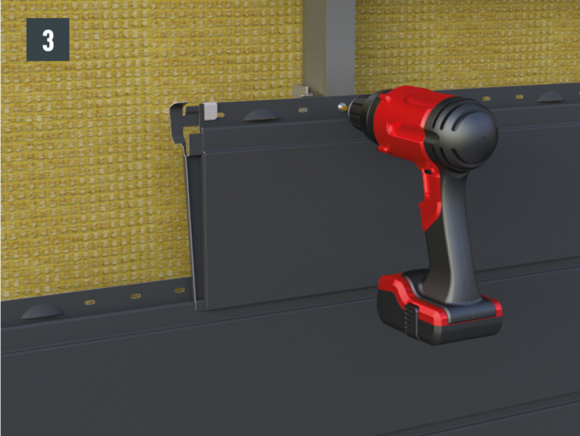 • Install siding with pre-installed joint according to the siding installation guidelines and fasten to the sub-structure framework (Fig. 3).