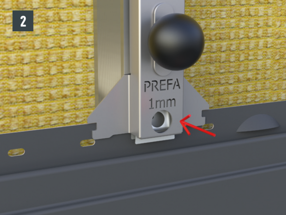 The spacing between the storm-proof clip and siding tongue is decisive for tension-free installation and material expansion. For this reason, install the storm-proof clip exclusive with the appropriate installation aid to ensure consistent spacing.