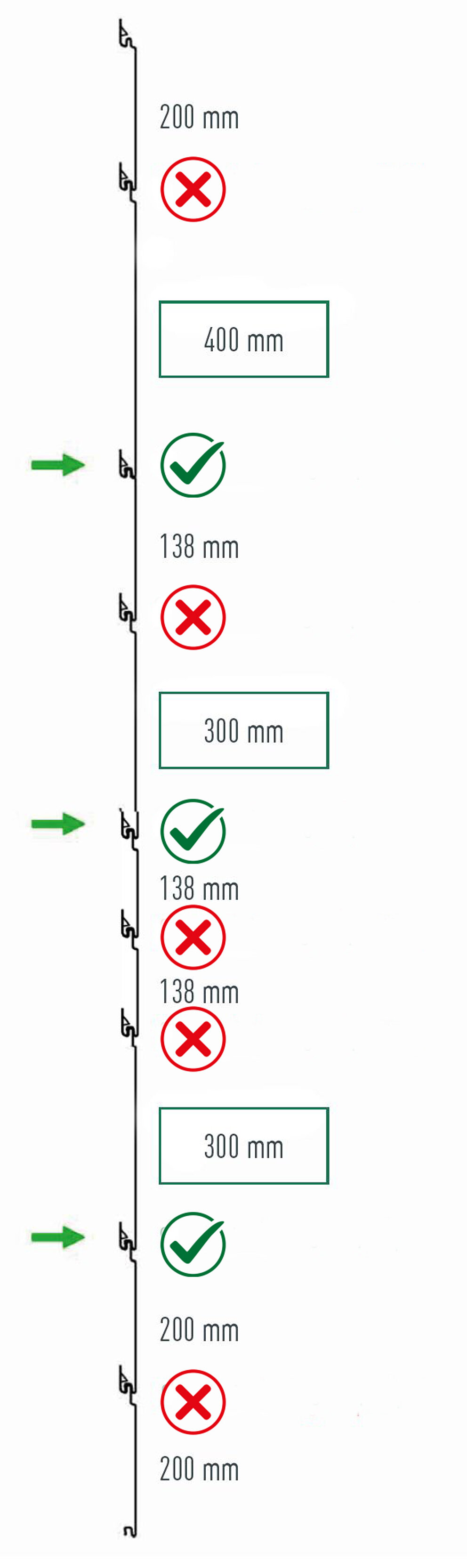 If you start off the façade with a 400 × 1.2 mm siding, for example, you must fasten the storm-proof clip to the starter profile.