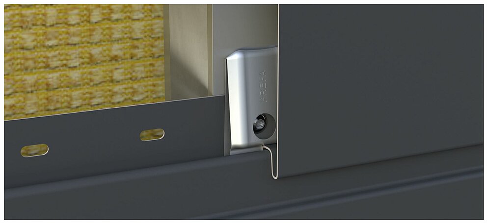 The storm-proof clip must be installed on all fastening points with the following combination of material thickness and width (each siding must be fastened on at least two substructure profiles).