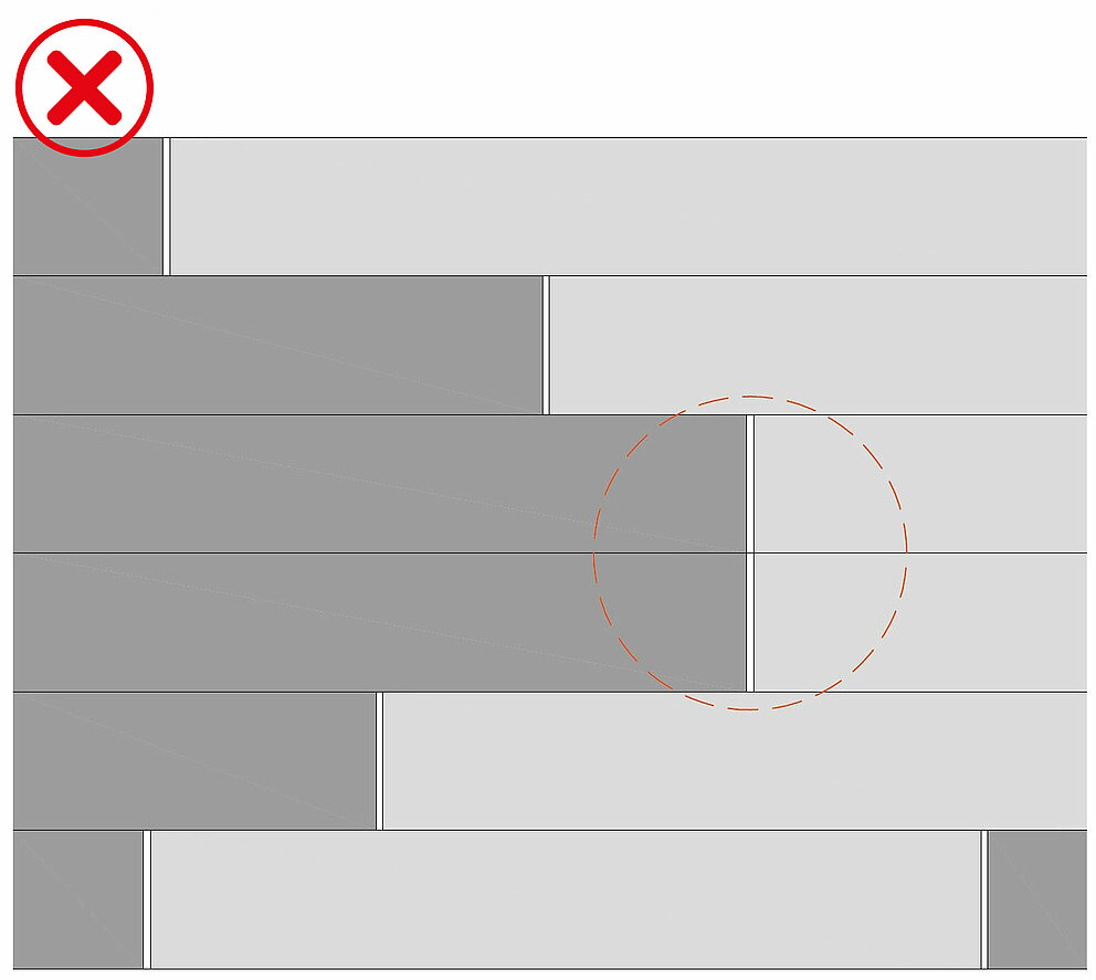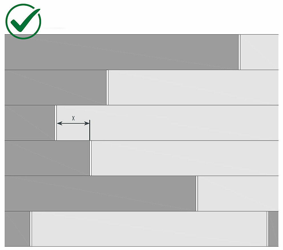 PREFA recommends an offset (x) with a min. spacing corresponding to the visible width (BB), e.g. for siding: 138×0.7 mm = min. offset 138 mm: