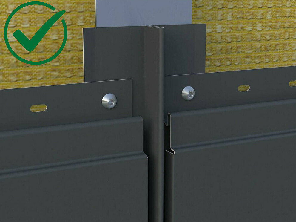 For installation in a straight line, join the siding to a sub-structure framework support profile to be able to install the joint connection.