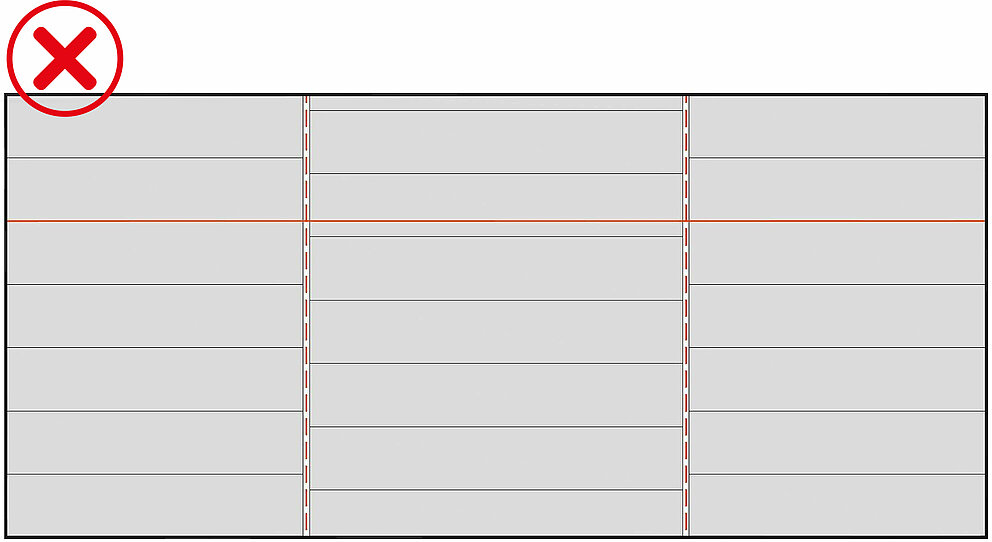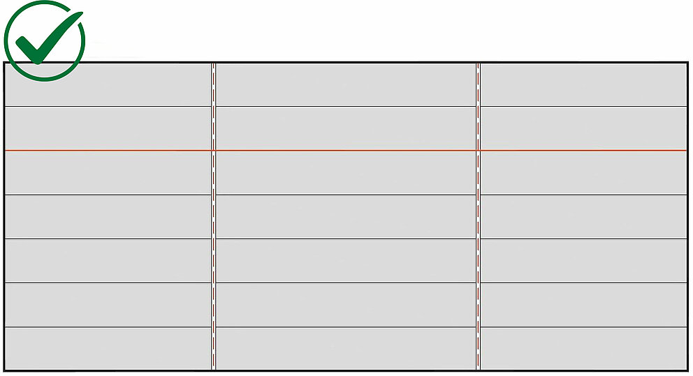 In particular, make sure that the line and alignment are maintained after gaps, e.g. in the case of butt joints. Therefore, we highly recommend to chalk lines at regular intervals.