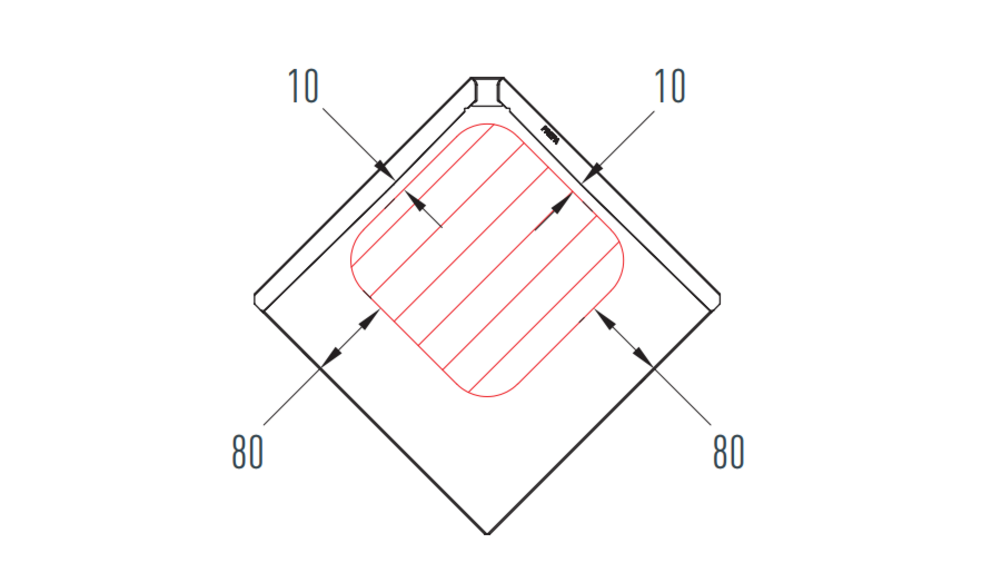 If you install something on the façade (such as lamps), pay attention to the permissible installation area of the 44× 44 rhomboid façade tiles during installation. If it is not possible to adhere to the installation area, a production board must be folded in.