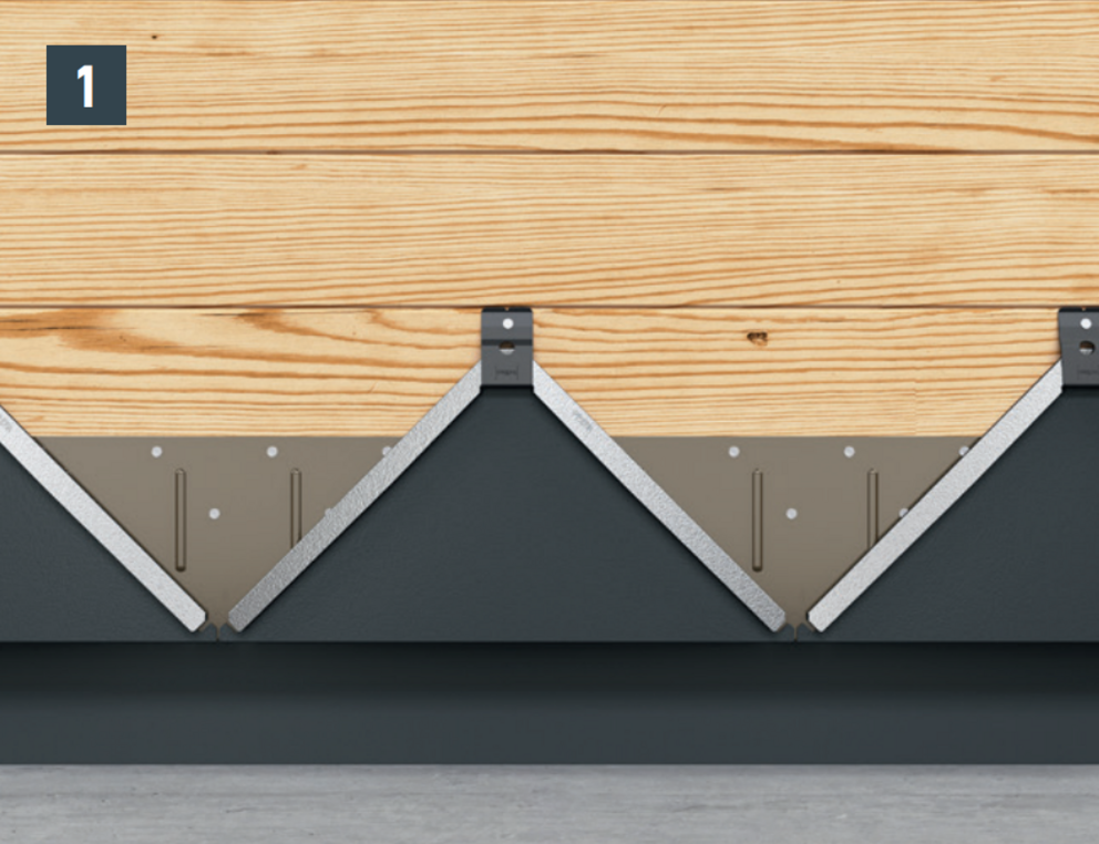 Each 29 × 29 rhomboid façade tile is fastened with a clip and a supplied ring nail 2.8/25.