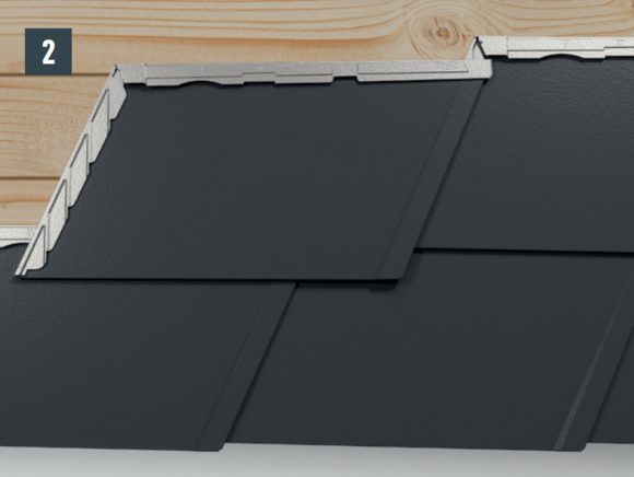 Each DS.19 shingle is fastened with a clip and a supplied 2.8/25 grooved nail (= standard fastening for built-up areas).