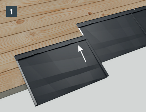 Adjust FX.12 façade panel and push into the folds. Strike the bottom edge of the panel lightly with the handle of the hammer (Image 1).