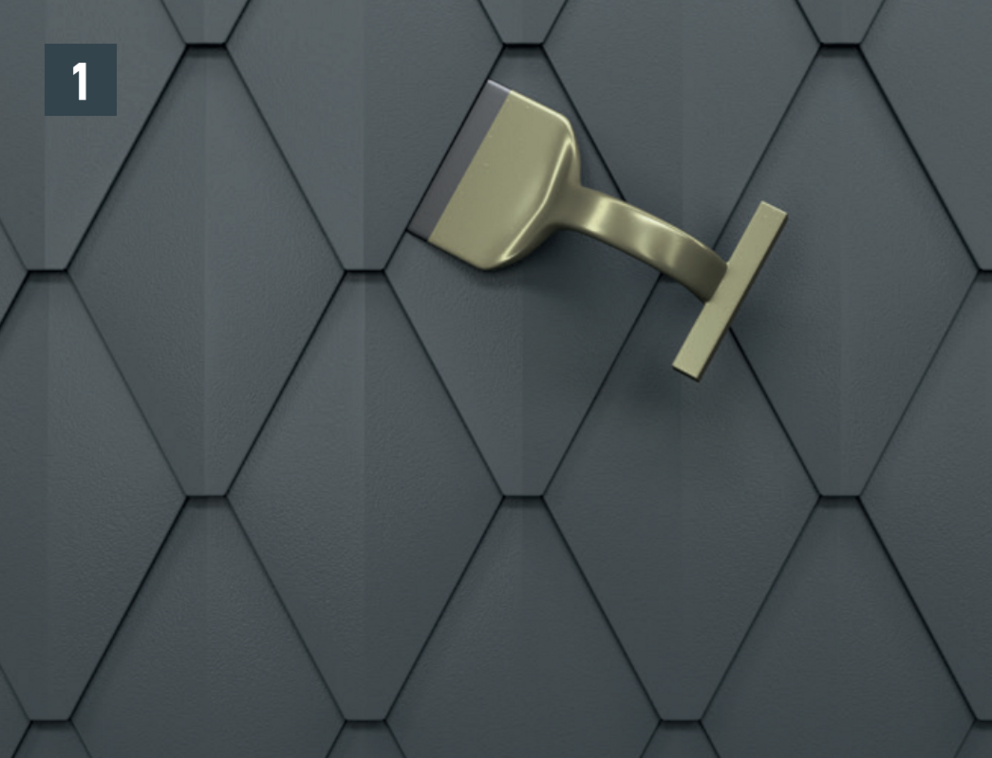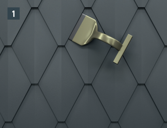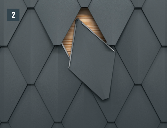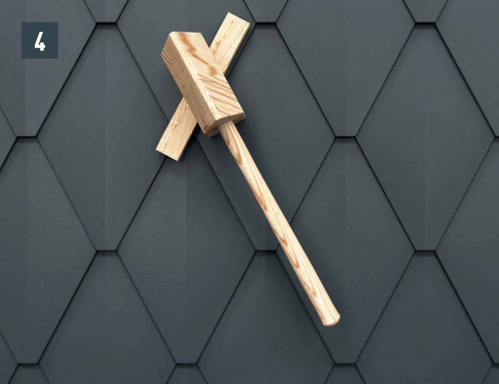 Slightly open the hook-on seam of the new small rhomboid tile, push up and fasten (Image 3).