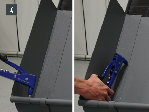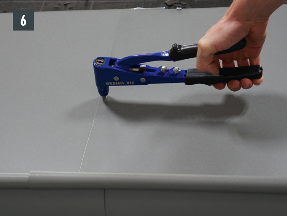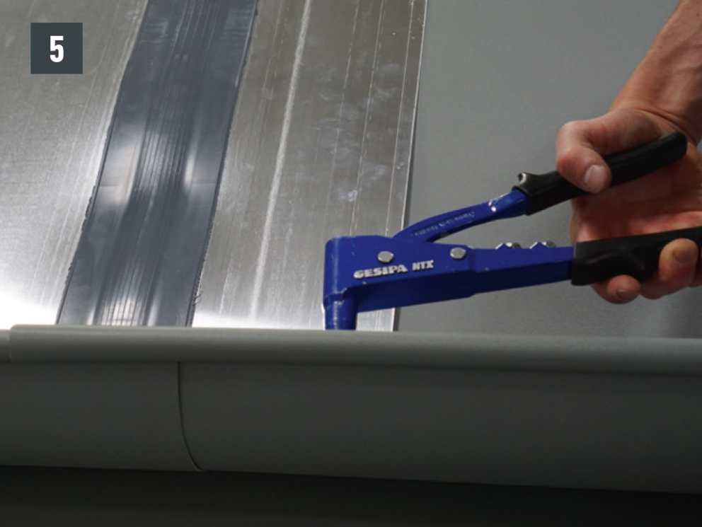 On-roof gutter joints can also executed with 20 pcs. of 4 x 9.5 mm PREFA rivets in a cross stitch version and sealed with PREFA silicone.
