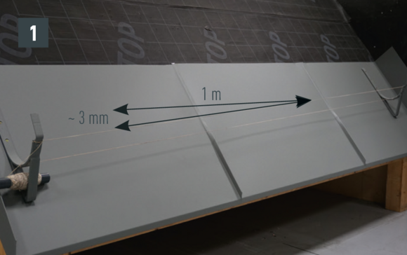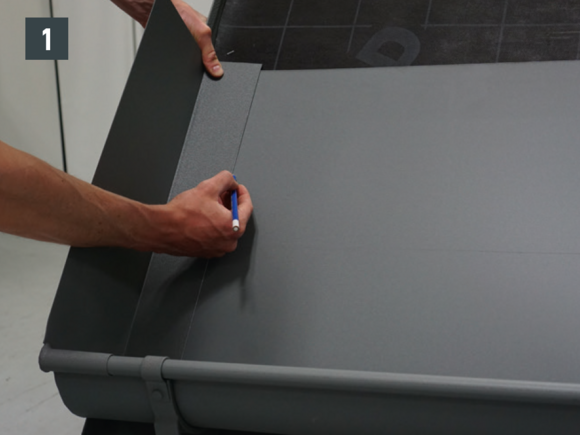 It is important to ensure that the roof gutter rear edge is 10 mm higher than the front of the edge gutter.