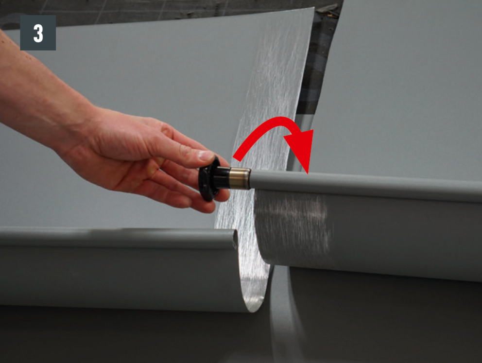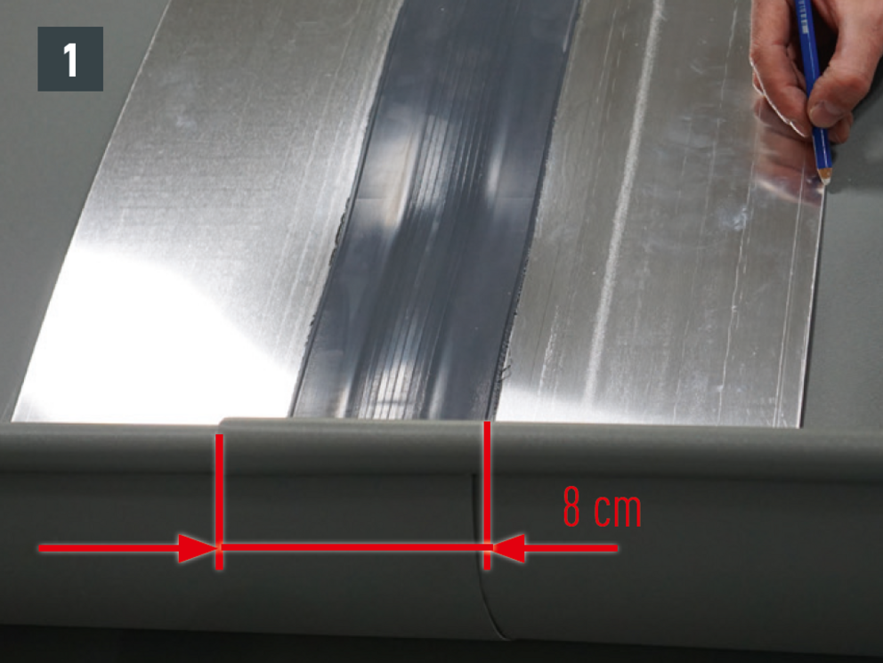 Flatten the seams that the on-roof gutter overlaps 150 mm minimum. Mind fall