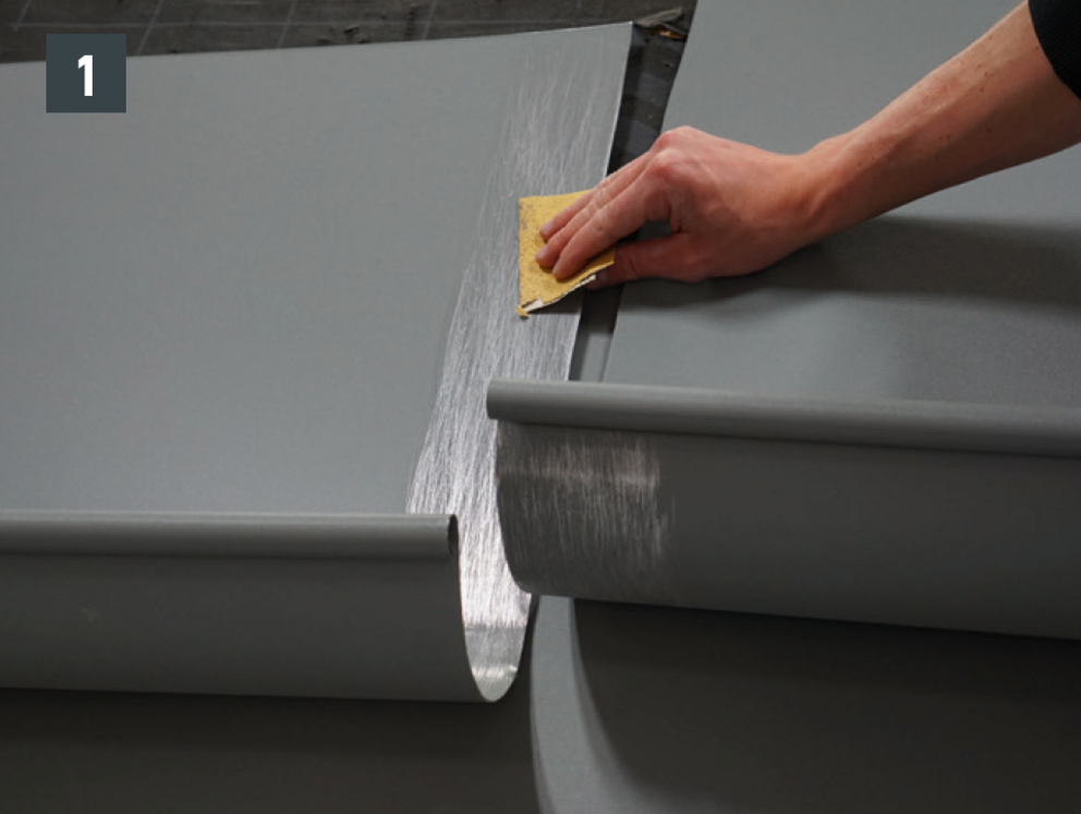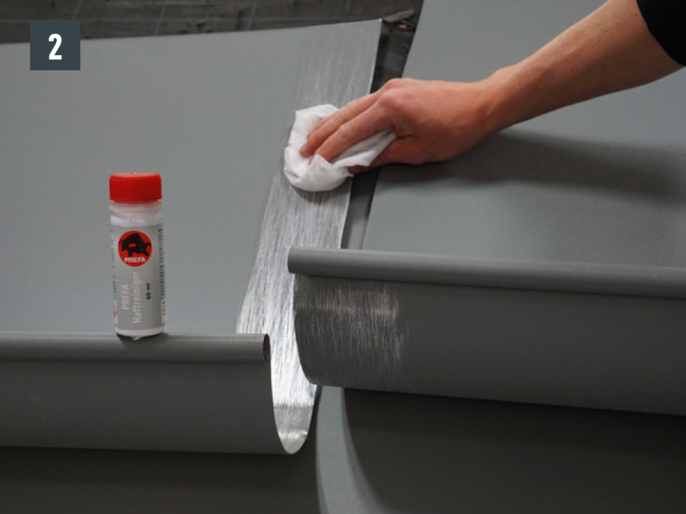 The joint can be made as a glued or riveted version. Riveted joints must also be sealed with PREFA special silicone.