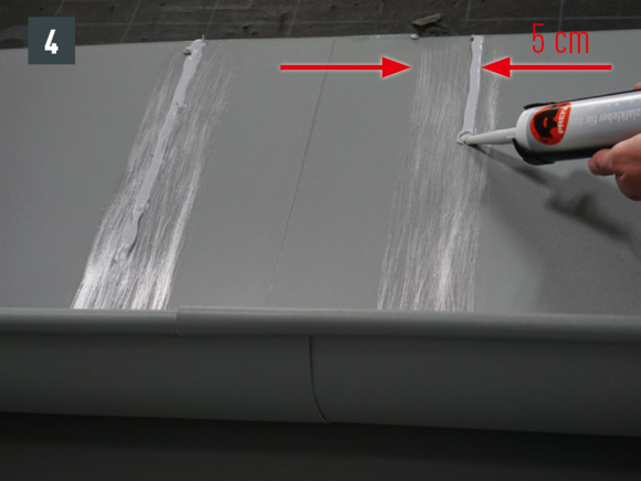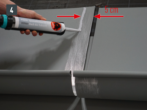 On-roof joint with 1 special adhesive cartridge