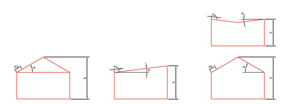 ed = spacing on the roof surface; ed = (e/10) / (cos)