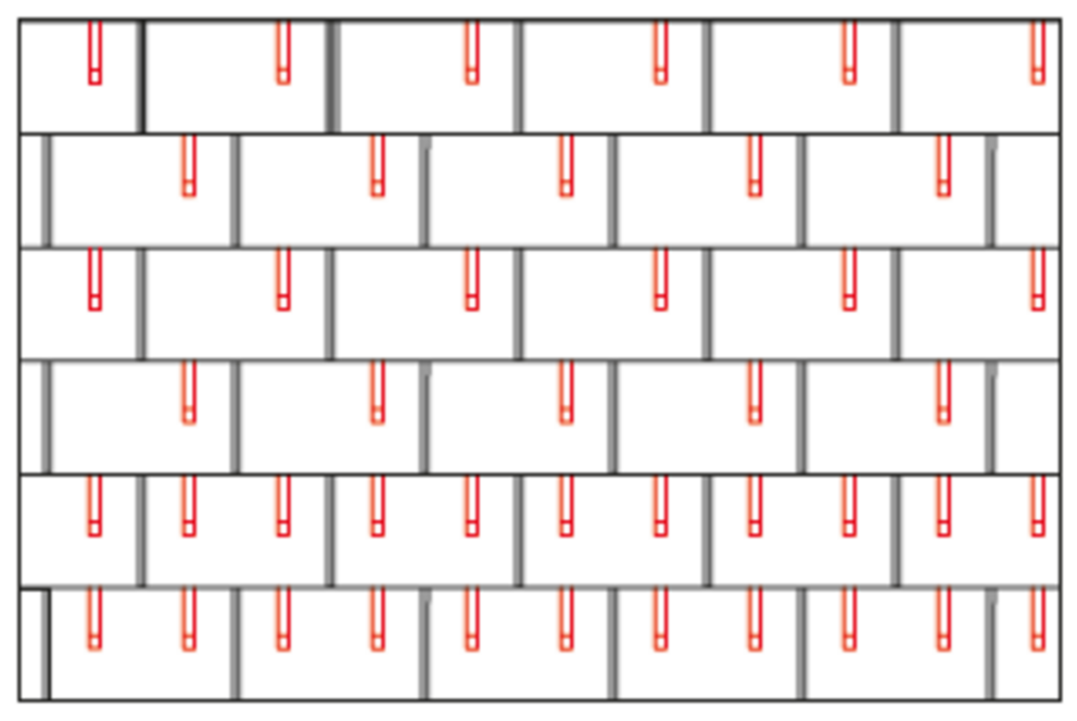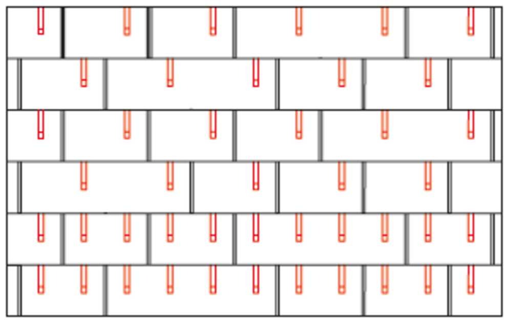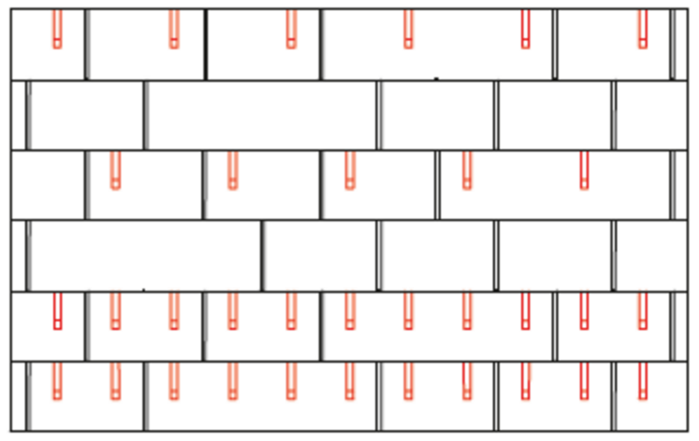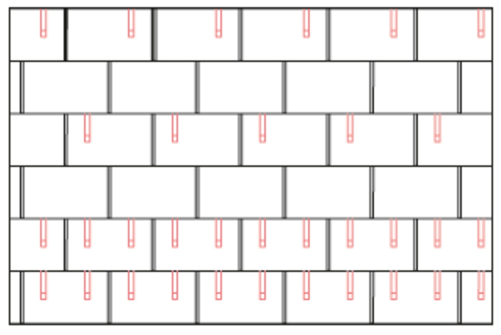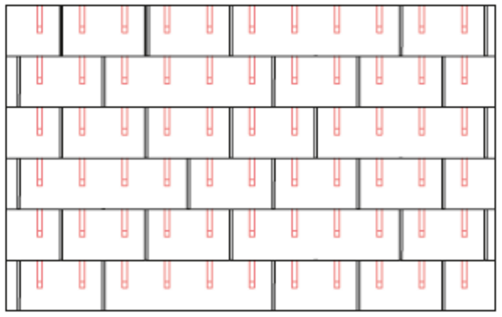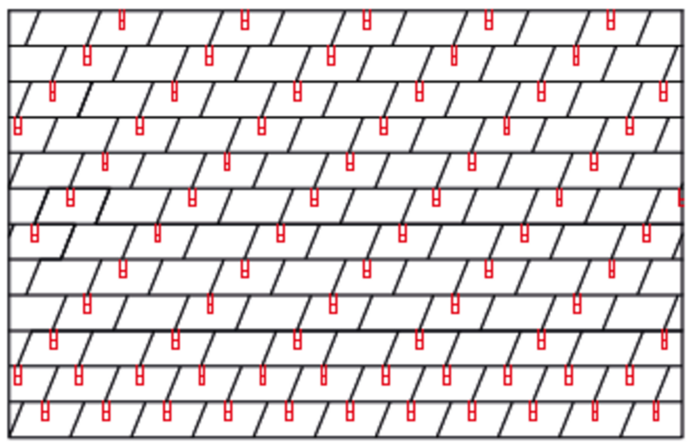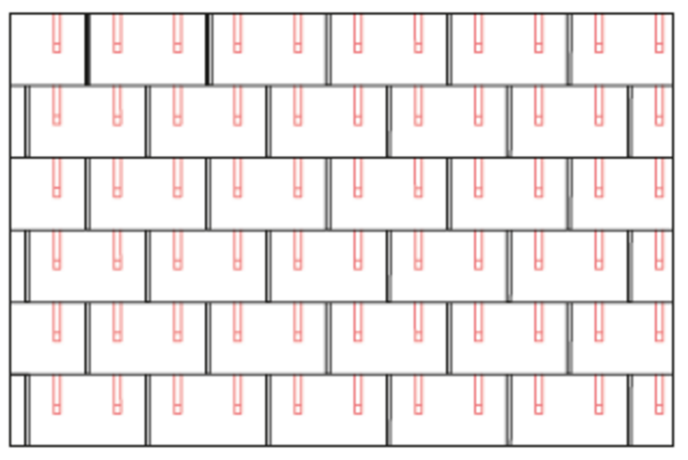 With DS.19 shingles, 2, 4 or 8 snow guards are installed per m² (see table below - Installation patterns DS.19 1, DS.19 2 and DS.19 3). The first two rows must be equipped with snow guards throughout.