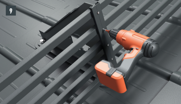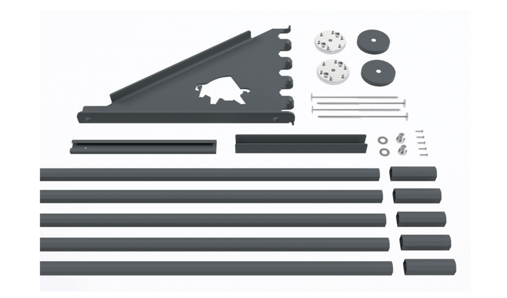 Made of colour-coated, high-strength aluminum alloy, consisting of two foot parts with surface seal, XL snow rake bracket and fixing slider, incl. fixing material |
