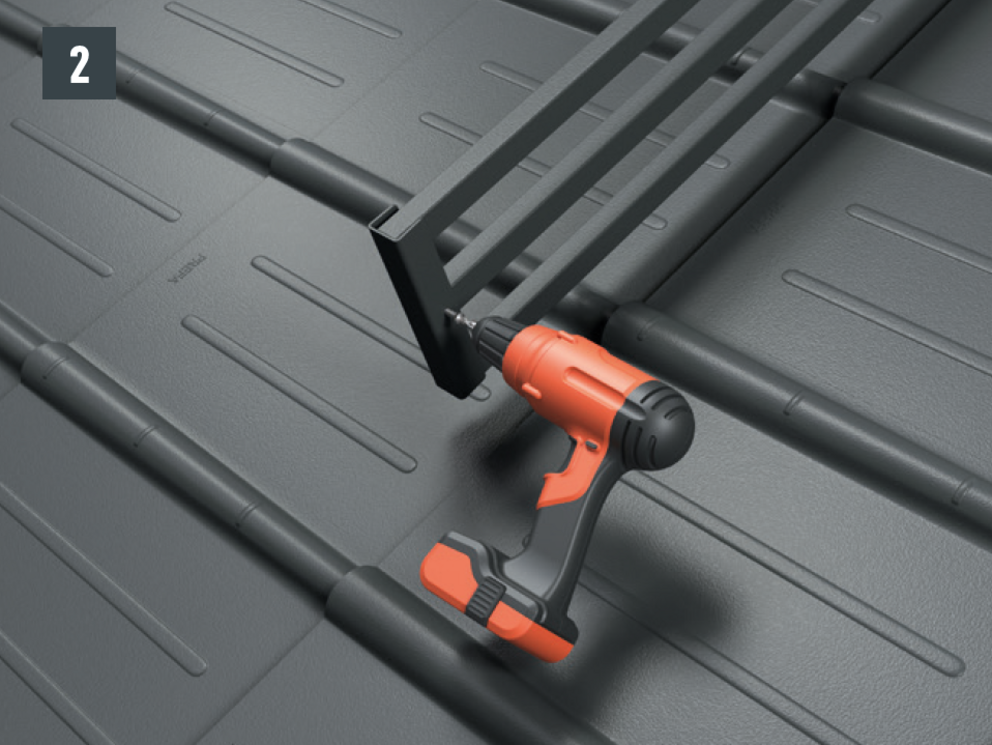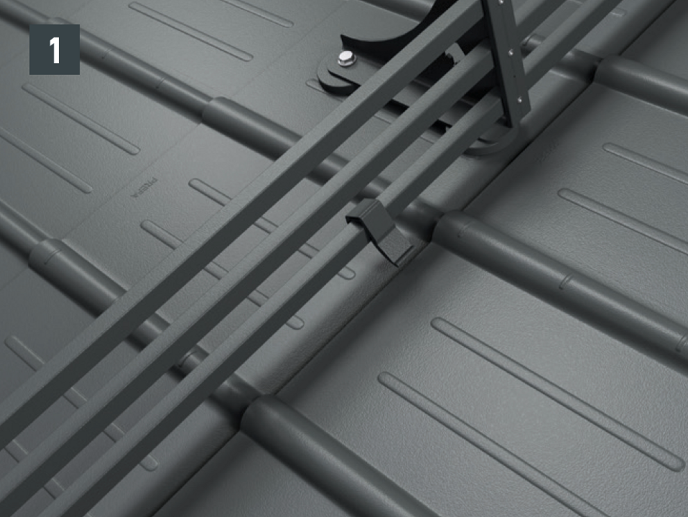 The pipe-style snow guard system can only be installed on a solid, flat and fully supported substrate. |
