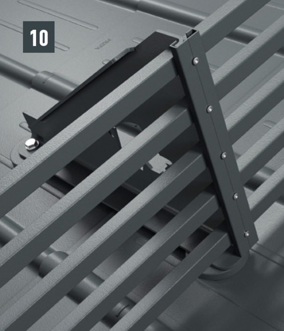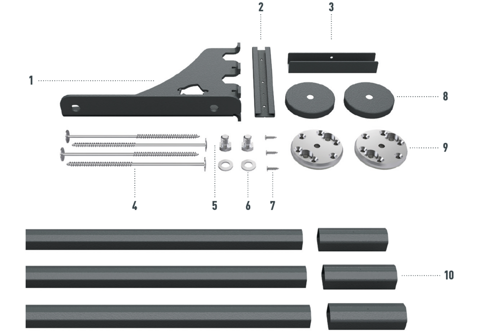 Made of colour-coated, high-strength aluminium alloy, consisting of two foot parts with surface seal, snow rake hook and fixing slider, incl. fastening material. |
