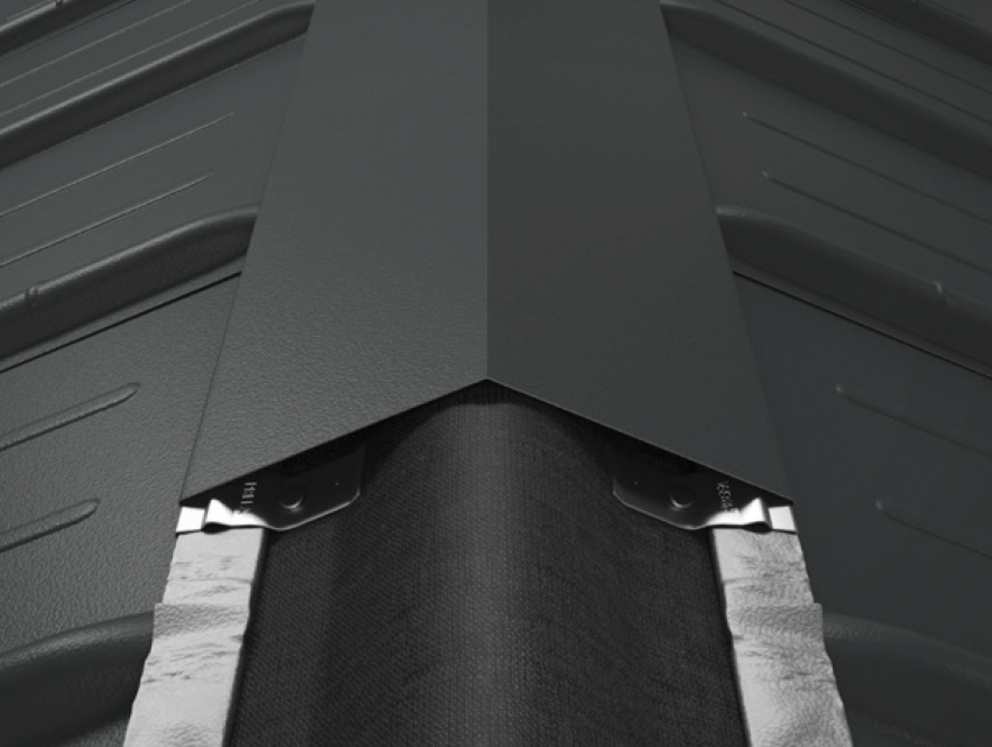 A simple ridge cap can be used if the distance between the PREFA roof covering and the ridge point is less than 150 mm, and no ventilation is required.