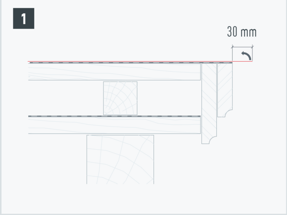 • Mark the upstand area and 30 mm fold allowance (Fig. 1).