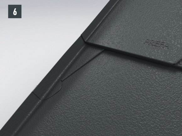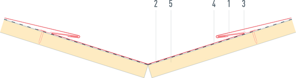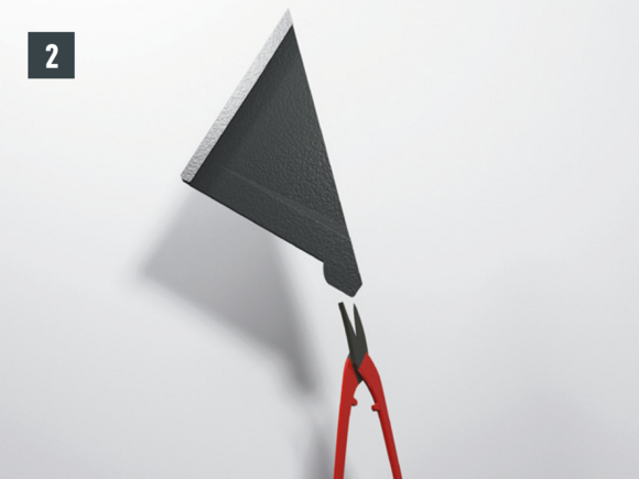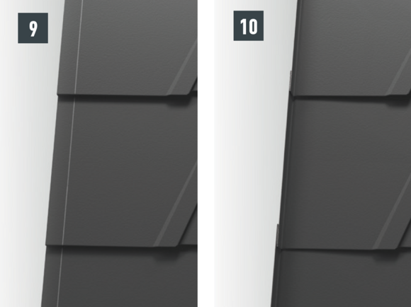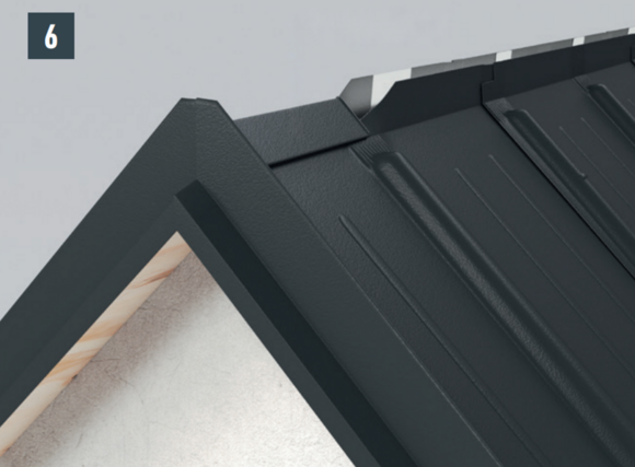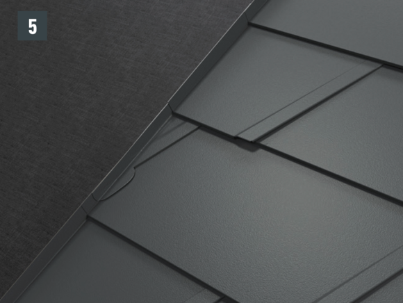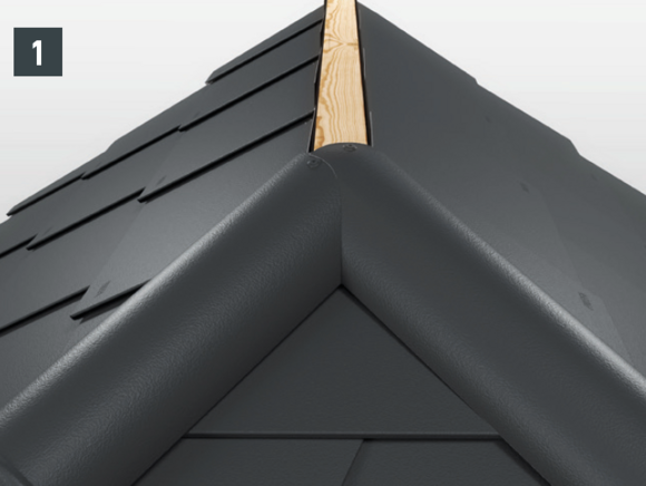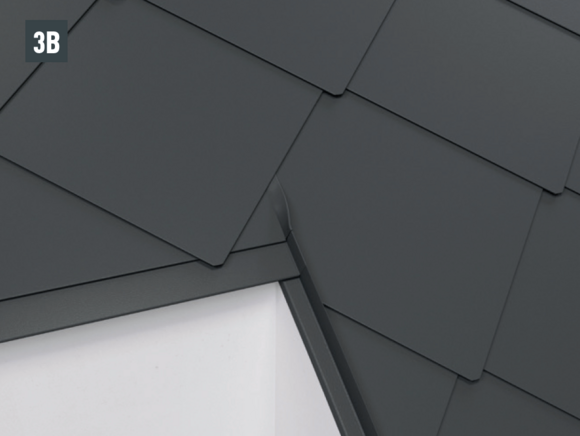 With each left-hand upstand of the shingle (verge flashing and edging), the folds running diagonally downwards are to be notched in order to avoid any capillary action.