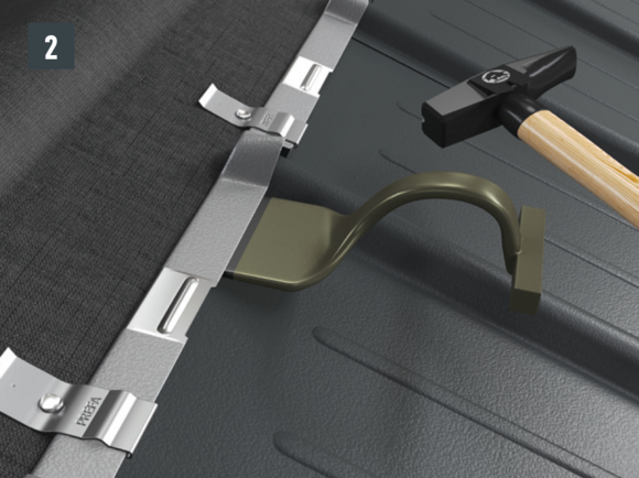 • Flatten the bead slightly and bend inwards by 180°. Then insert panel and fasten using clips (Fig. 2 and 3).
