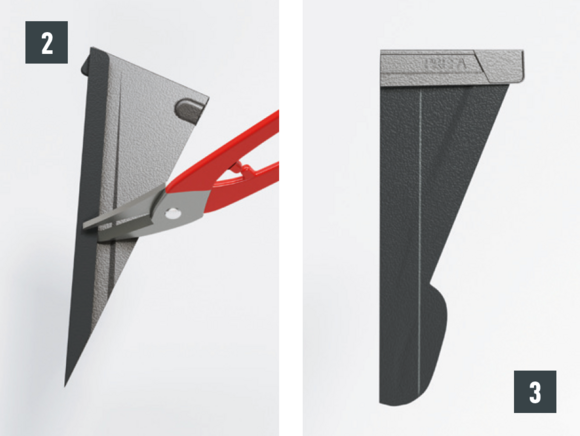 CAUTION: Choose the size of the fitting part so that the installation of the snow guards is not impaired. The exact design is clearly visible on the aligned snow guards.