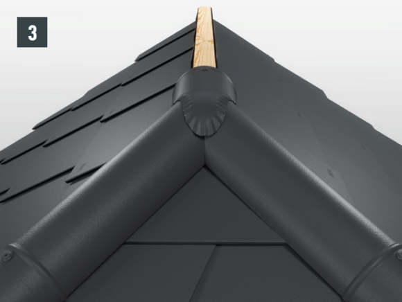 • After attaching the ridge cap made in this way to the ridge batten, you can continue with the conventional ridge caps (Fig. 3).