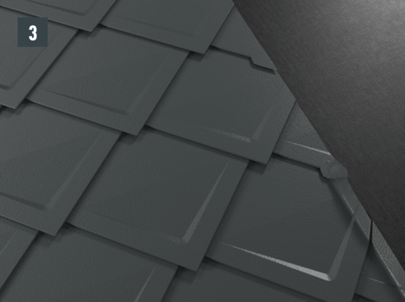 The following row of rhomboid roof tiles can then be installed over the entire width (Fig. 2A and 2B).