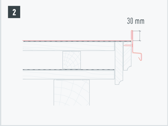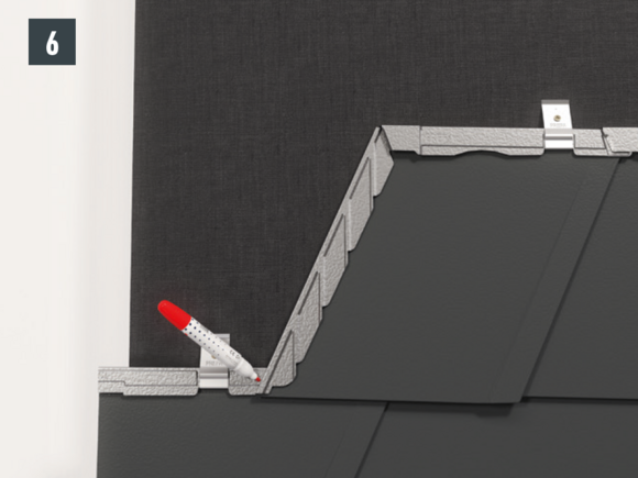 Tip: First mount the cover plate in the edge area and set up 30 mm for gable strip, then attach gable strip.