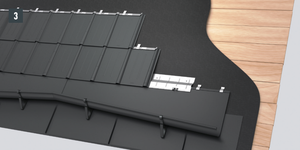 • The following row of roof tiles can then be installed over the entire width (Fig. 2).