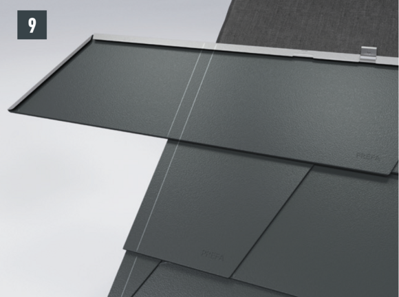 • The following row of R.16 roof tiles/FX.12 roof panels can then be installed over the entire width (Fig. 9).