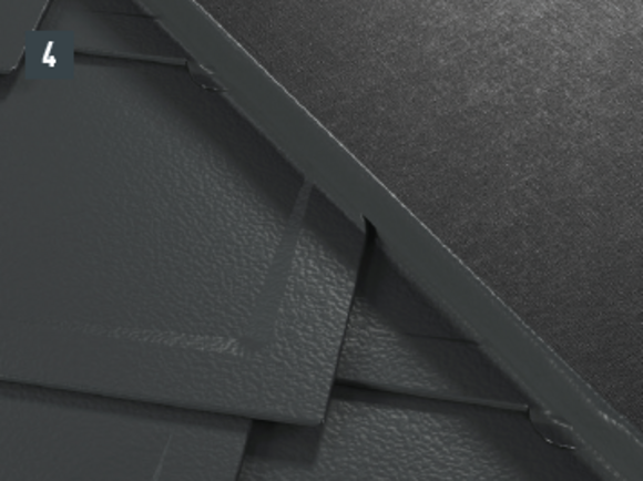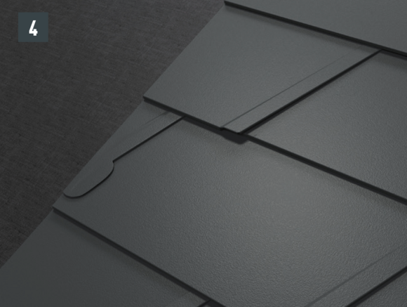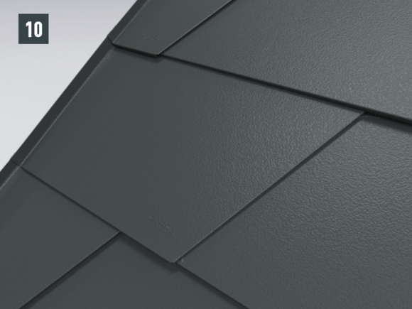 If a continuous apron flashing is fitted for rhomboid roof tiles 29 × 29 or 44 × 44, then end plates are to be used for the rhomboid roof tiles 29 × 29 or 44 × 44. These enable a horizontal flat lock welt.