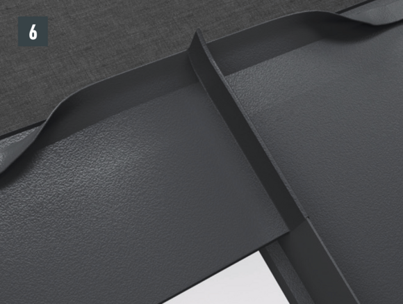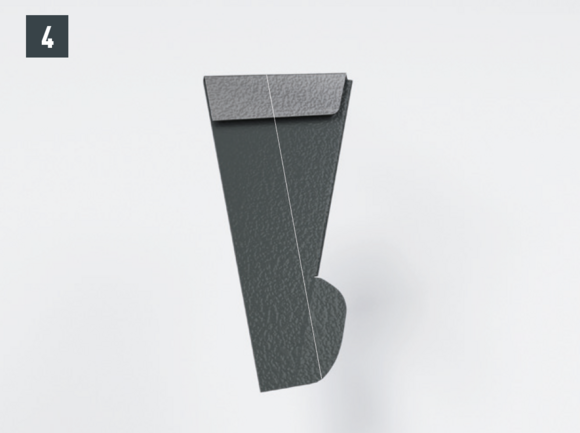 With each left-hand upstand of the DS.19 shingle (verge flashing and edging), the folds running diagonally downwards are to be notched in order to avoid any capillary action.