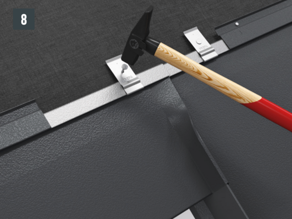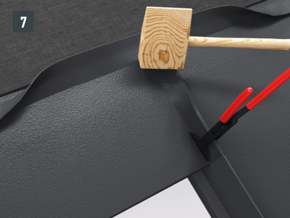 • Both R.16 roof tiles and FX.12 roof panels are folded together, and the fold is turned over in the hanging area (Fig. 7).