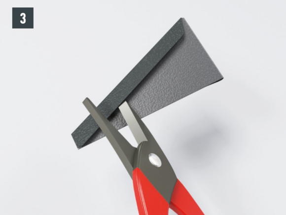 With each lateral upstand of the rhomboid roof tile 44 × 44 (verge flashing and edging), the folds running diagonally downwards are to be cut out and bent up on the underside.