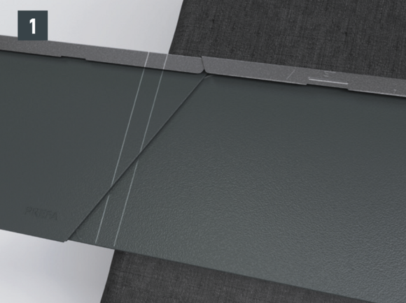 After trimming the PREFA roof covering, create a flat lock welt.