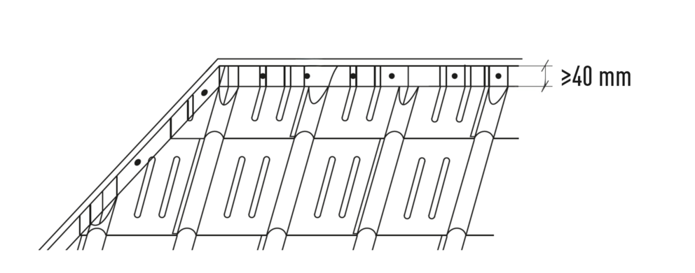 • The lateral water fold is to be bent 40 mm wide on both sides.