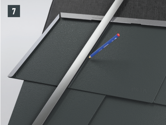 After preparing the shingle, the connection flashing (e.g. gable cladding or wall connection cove) can be produced and worked into the covering.